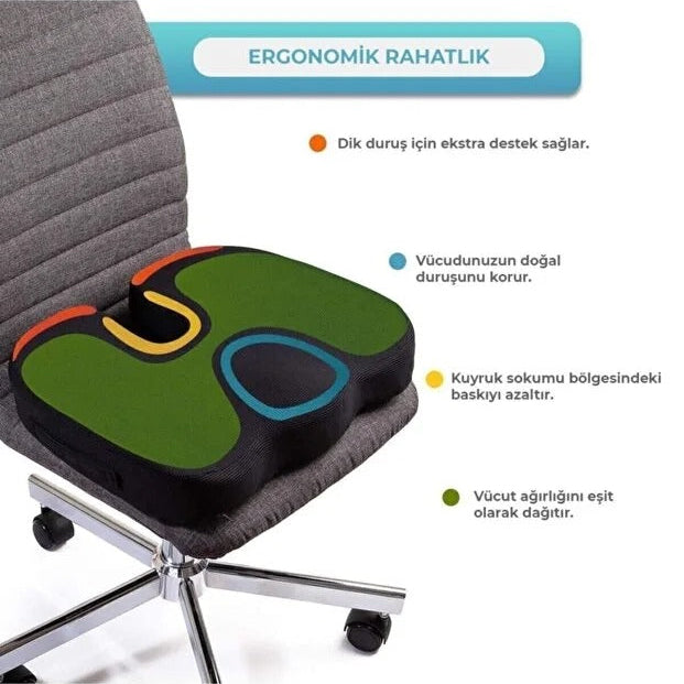 Nerede olursan ol, ağrısız otur. Ortopedik oturma minderimiz, yumuşak ama gün boyu destek sağlayan kalın visco (memory) süngerden üretilmiştir. Özel oyuk tasarımı, sırt ve kuyruk sokumu bölgesindeki baskıyı azaltarak ağrı ve uyuşmayı hızla hafifletir.